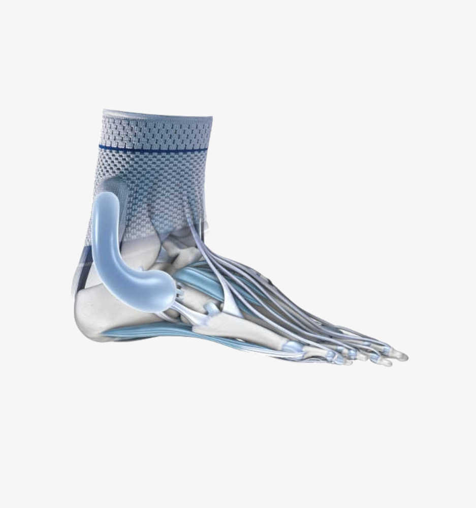 De Bauerfeind MalleoTrain - de bandage voor musculaire stabilisatie van het spronggewricht.