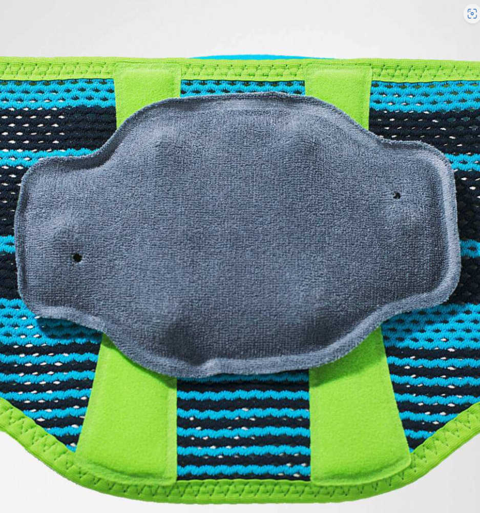 De bandage zit aangenaam rond de hele romp en heeft een licht liftend effect. Bij beweging masseert het breiwerk het weefsel over een groot gebied. In het ruggedeelte is een speciaal functioneel element geïntegreerd, een anatomisch gevormde pelotte met noppen, dat het massage-effect versterkt. De noppen maken een minimale draaibeweging en werken gericht in op de triggerpunten. De stimulerende massage heeft een positieve invloed op de sensomotoriek: de stabiliserende rompspieren worden geactiveerd, de aansturing van de spieren geharmoniseerd en de lichaamshouding overeenkomstig verbeterd. Dat voorkomt effectief spanningen en het maken van verkeerde bewegingen die blessures kunnen veroorzaken. Pijn door overbelasting neemt sneller af waardoor schadelijke pijnontwijkende houdingen worden vermeden. Het breiwerk van de Sports Back Support lijkt op een fijn net van luchtige mazen en is gemaakt van ademend, slijtvast materiaal. Daardoor is de bandage bijzonder licht, aangenaam om te dragen en praktisch tijdens het sporten. De anatomische pasvorm met platte buiksluiting zorgt voor een goede pasvorm bij een maximale bewegingsvrijheid.