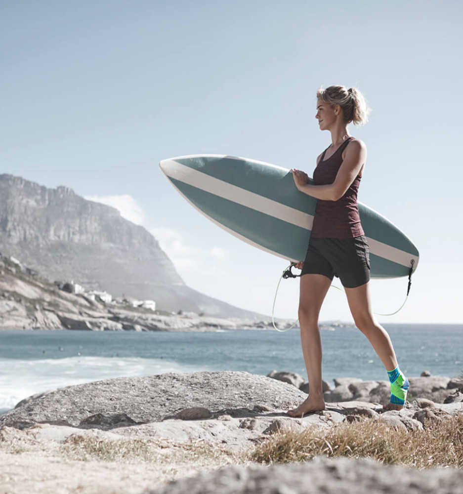 + Beschermt tegen verzwikkingen en verdraaiingen van het enkelgewricht, voorkomt overbelasting en blessures