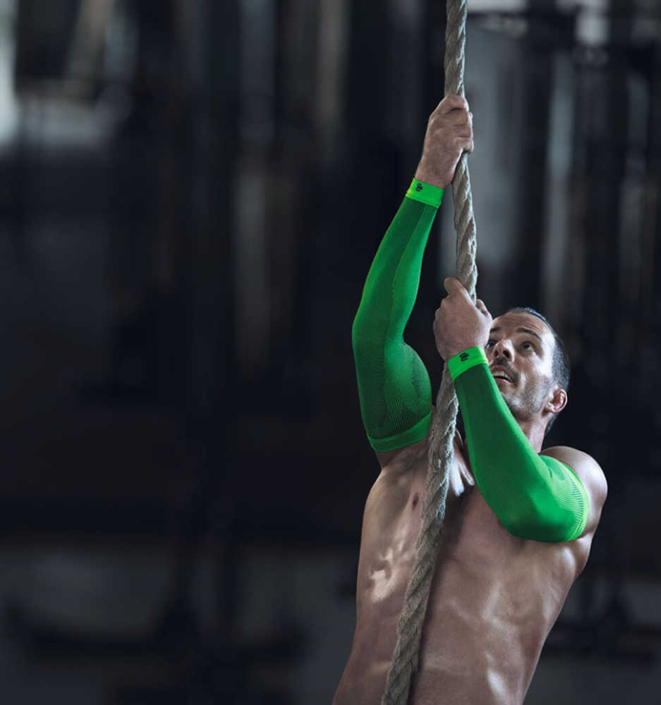 De comprimerende werking vindt plaats volgens de medische richtlijnen, d.w.z. de druk neemt af van de pols naar de bovenarm. Dat stimuleert de doorbloeding en voorkomt dat je snel moe wordt. De spieren worden beter van zuurstof voorzien, blijven beter presteren en regenereren sneller. Bovendien worden de armspieren snel opgewarmd door de gestimuleerde bloedcirculatie en zijn daardoor beter beschermd tegen blessures. De sleeves in sportief design zijn verkrijgbaar per paar, slijtvast, ademend en voor meer draagcomfort extra zacht aan de binnenkant van de elleboog. Ze kunnen gewassen worden op 40 °C. Voor de keuze van de juiste maat moet de omvang van de pols, de omvang van de bovenarm ter hoogte van de oksel en de armlengte van de pols tot de oksel worden opgemeten.