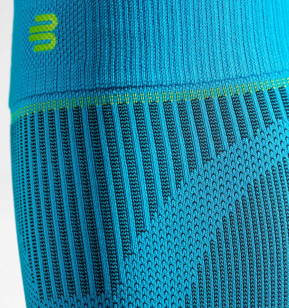 De sleeves kennen een innovatieve taping en spieropbouwende zone met zone-specifieke compressie ondersteunt de spieren in het omliggende gebied. Taping zone verbetert de proprioceptie - het gevoel van lichaamsbewustzijn en stabiliteit. Ze geven de spieren in de onderbenen extra kracht door middel van doeltreffende compressie.