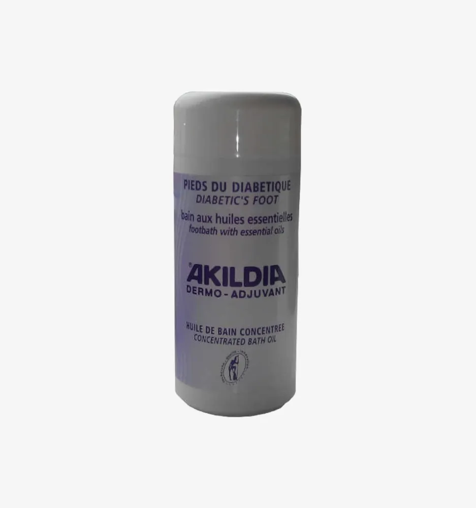 Akildia Voetbadolie, is een geconcentreerd en schimmelwerende olie. Maakt de diabetische voethuid soepel, veerkrachtig, zacht en desodoriseerd. Bevat geen parabenen. Met natuurlijke etherische oliën en schimmelwerend bestanddeel.